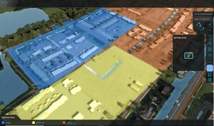 The Area Overlay is an overlay which is used for displaying multiple areas in one overlay. By default, the overlay does not display anything. When this overlay is added to a project, it can be activated by selecting the corresponding icon on the navigation panel. When activated, it displays the active areas as selected in the areas list. The areas appear in the color as selected in the area properties.