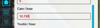 Change the "Cars / hour" value to a value 10 times as much.