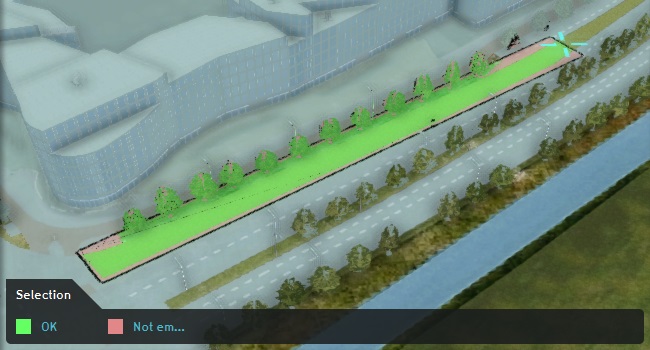 Left-click on one end of the free location where the new Building can be drawn. Then move the mouse so that a selection appears and extends across the intended location. When the selection is oriented appropriately, left-click again to place it.