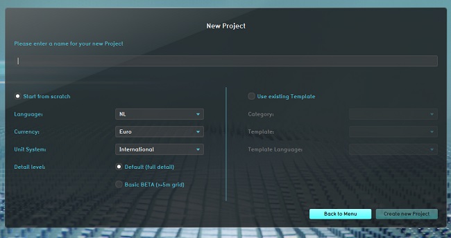 In the main menu, click on "Create new Project".