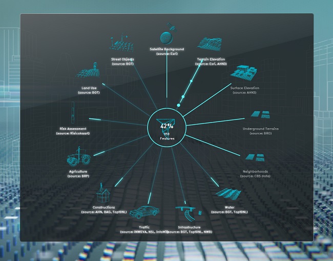 - Calculation models are added to analyse the data, resulting in information on a variety of theme's such as heat, water, and traffic effects.