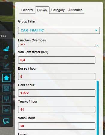 Data in the right panel can also be easily changed. Switch to the General tab, and change the name of the road to "test road".