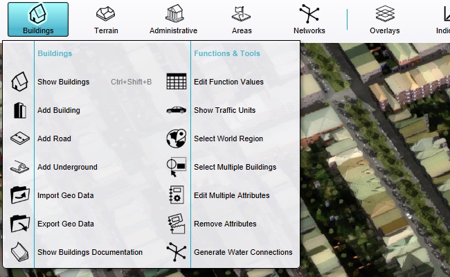 - Tools for adding changes, from individual options for free-form drawing to complete urban plans which can be implemented integrally, are available for exploring and analyzing potential scenarios.