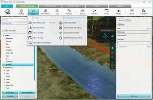 Surface Terrain can be seen in the 3D Visualization, with a height defined by the elevation model, and a texture defined by the Terrain Type.
