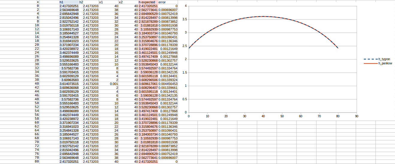 The following formula, taken from [1], describes the curve of ground water levels when the ground water flow to the left and right have become stable: