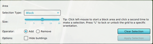 The bottom panel, on the bottom of the screen has multiple functions in the Editor. Its primary function is to display the controls for tools in the editor, such as the brush panel or the Free cam.