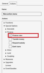 The budget can be inspected during a session by opening the finance view. This is a Special Option that accessed via the Action Menu.