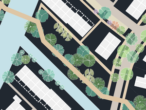 In the drawing below you see an example of a wrong draw order. The road can be seen above the trees. The Tygron Platform will load this road after loading the trees, which can cause trees to fall away. A simple solution is to sort the path backwards in AutoCAD.