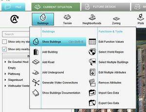 When you have selected an area for a new project, the project is generated automatically based on the available data from the connected open data sources. This is the so called baseline project. The baseline project represents the project case as it is from the start of your scenario planning. You can edit the project manually and import your own data sets. In this part, we explain how to edit the project in the Tygron Platform itself. In the Tygron Platform, functions that describe a buildings details, are available and will be used to place buildings in the project area. Based on the purpose of the building and, for example, the year of construction, a function is matched and placed in the right contour of a building. Sometimes there is not enough information in the data to determine the purpose of the building so a placeholder is used. Or, in real life, the building looks more like one of the other models that are available in the Platform than the one that is generated automatically.