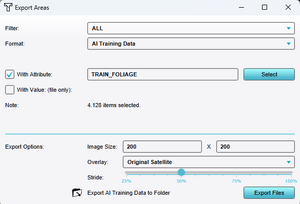To export a test dataset, replace the intersecting areas attribute TRAIN_LIMIT_AREA by TEST_LIMIT_FOLIAGE and export it to a different directory, for example user/documents/foliage/test/demo_training_data