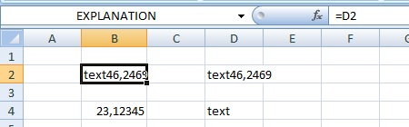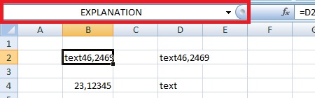 In this image the cell B2 is named "EXPLANATION". This serves as an output cell. For its content it refers to a different cell.