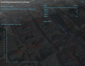 The green MKP Indicator calculates per different type of area a grade based on the amount of green in this area. The allocation of the area determines the calculation of the grade. Each type of area has different parameters for the amount and value of green. For example, an area with mostly industrial buildings is allowed to have less green than a residential area.