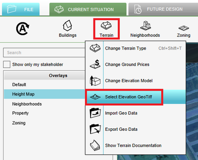 - Hover over the Terrain button in the Current Situation tab.