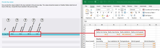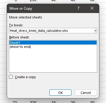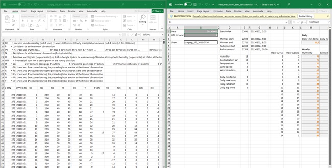 Download and open the Heat Stress KNMI data calculator Excel File.
