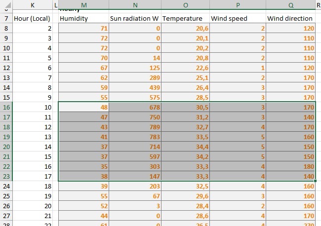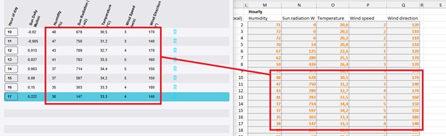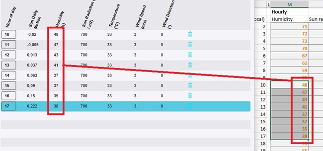 For example, the row of values where column K has the hour "12" listed, should be entered in the Heat Overlay's configuration wizard for the hour-of-day 12.