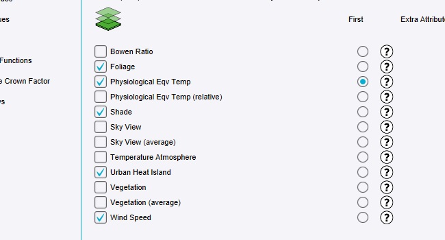 With the Heat Overlay selected in the editor, click on "update now" in the right panel to recalculate the results. This will include both the end result of Physiological Equivalent Temperature, and the child Overlays with intermediate results previously selected.