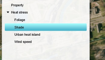 The Heat Overlay specifically requires foliage information to properly compute the height and location of shade. If no data specifically related to foliage is available in the Project, foliage data can be derived from Buildings such as trees.