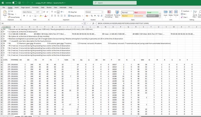 Next, the data of that particular weather station can be downloaded directly from the site of the KNMI. The downloads can be found here: