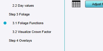 Because the model is now set to use the default foliage determination based on Functions, some options to change those Function Values are available, as well as options to gain insight into the presence of those values, are available. These options can be skipped.