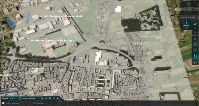 - The presence of shade in the project area, calculated based on the orientation of the sun and the Digital surface model.