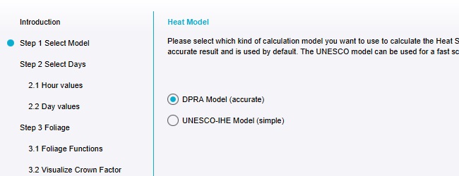 In the first step of the wizard, the applicable heat calculation model can be selected.
