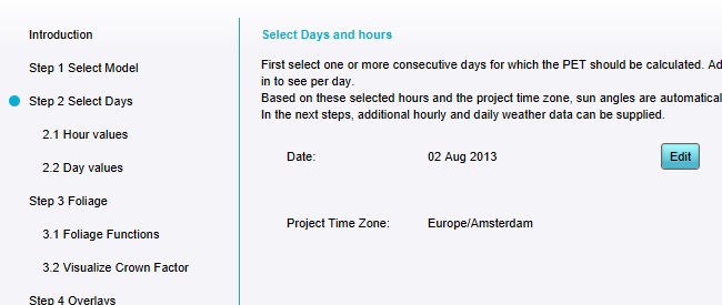 Note that these steps are mainly described in the context of Projects location in the Netherlands. For locations outside of the Netherlands, the default location of Wageningen could be used, but this should be done with care as that weather effect may not be appropriate for another Project's location.