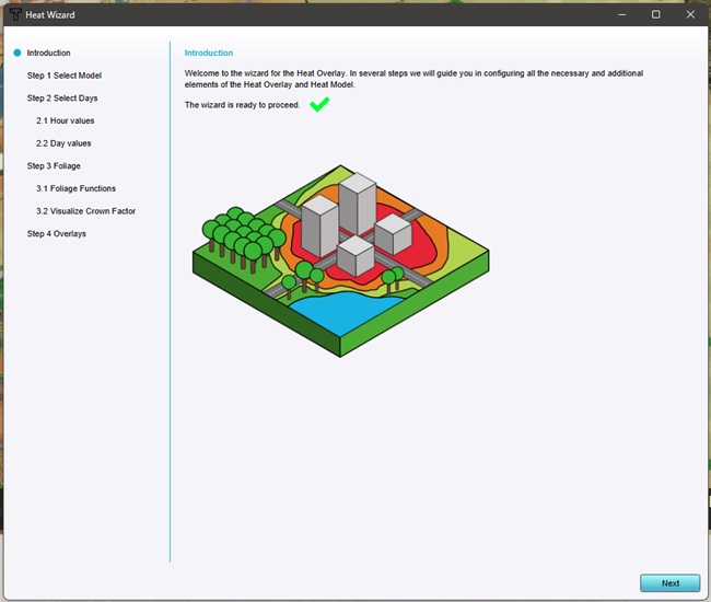 To become more familiar with the options the Heat Overlay provides, the configuration wizard can be stepped through and all the options inspected.
