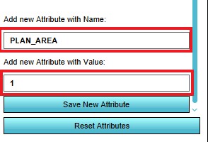 - Scroll down to the bottom and enter the Attribute name PLAN_AREA with value "1".