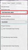 | 4 | Open the Travel Distance Overlay and select the keys tab. Under the key Destination Area, select the attribute chosen attribute in step 3, in the example ROUTING_AREA. This ensures that the destination areas are identified using this attribute. |