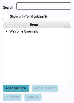 When you create a new cinematic, it will serve as an "empty slot". Before a cinematic can be used, it is important to add key points to the cinematic, and to adjust their location.