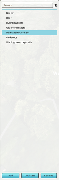 - There are different types (See also) of stakeholders available in the Tygron Platform. In this field the type of stakeholder can be changed by selecting an option from the drop down menu.