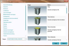 - By clicking on the image, the actual building type can be selected from a newly opened panel - the Choose Function list.