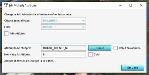 Editor → Current Situation (Ribbon tab) → Buildings (Ribbon bar) → Edit multiple attributes (Dropdown)