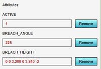 When preparing the CSV files for the breach, if the breach should be "open" from the beginning of the session, the first defined value for the breach height can immediately be a value low enough to allow water to flow in. If the breach should open up during the simulation but start "closed", the first defined value for the breach height should be equal to the terrain height in the breach's location.