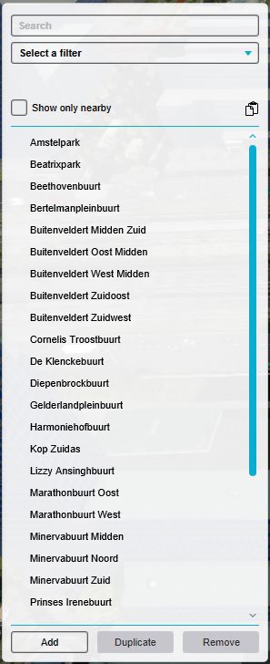 - The left panel starts with a search field, useful for lists with a lot of items.