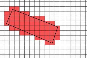 Although this provides a fairly accurate area this can lead to unwanted results for very small objects that are smaller then the grid cell area. When the cells center point does not intersect the small object it will not be rasterized and thus be part of the simulation.