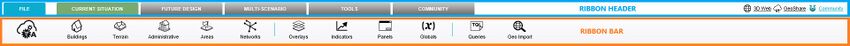 The ribbon at the top consists of 2 parts, the ribbon header and the ribbon bar.