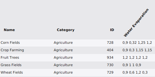 - Water evaporation factor (Water Overlay)