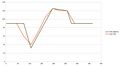 The evaporation graphs showing the evaporation factor as a percentage per day. These are based on Table 2.10 Cropfactors of the Gwz2016 book[1]. The approximated graphs use five control points (see the season table above) per type, such that it can be reduced to four values per year. Values between the control points are obtained by interpolation.