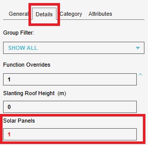 | Solar Panels | SOLAR_PANELS | Boolean | No | 0 to 1 | Attribute that determines whether a Building has solar panels or not. |