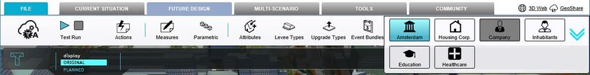 The Tygron Platform streamlines the planning process by bringing the actual stakeholder roles from the real world into a multi user environment. Users can then select which role they want to represent, in order to experiment, plan and negotiate better solutions for spatial planning, urban designs and development projects. Users can choose to select the role they fulfill in real life, or to select any of the other available stakeholders to learn about the 'other side's' interests and concerns.
