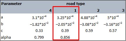 And for cells within a distance of 30-60m (for road-type 1 only):