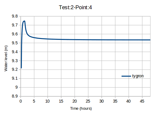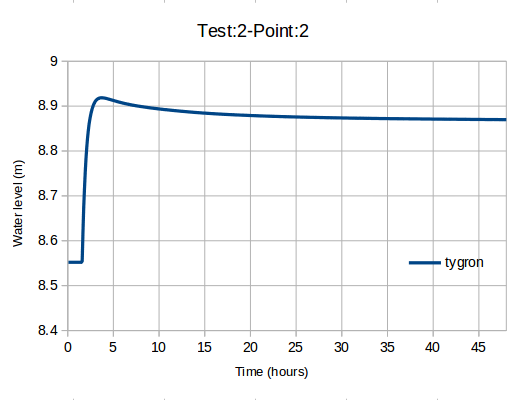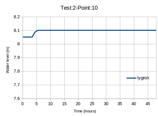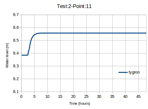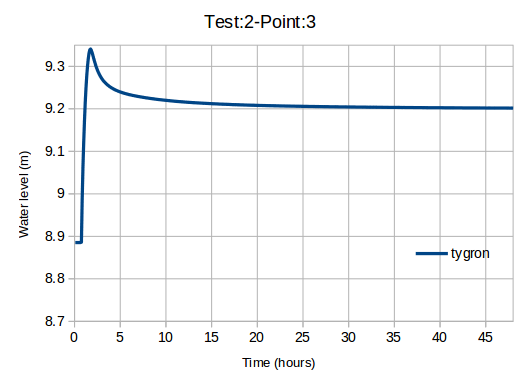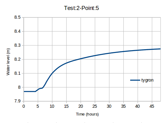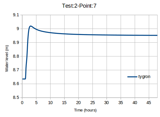 This benchmark performs test case 2 of the UK EA benchmark named Test 2 – Filling of Floodplain Depressions, using the Tygron Platform.