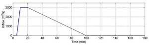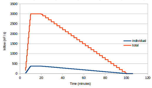 The total inflow was given by the graph in the introduction. We use 8 individual inlets, so therefore the individual amount is 8 times smaller than the total amount. See the image below: