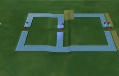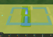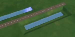 A road is considered large (and therefore impassable by a water connection) when the road's size is larger than the set threshold value. This parameter can be used to prevent water connections crossing large roads. The large road threshold is provided as a surface size in m2. The surface size of each road polygon is then checked against the threshold value.