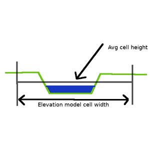 - For example when you have a 3m wide waterway channel and 0,5m grid cell, but the imported elevation model uses 10m cell accuracy all grid cells have the same (or interpolated height). Small elevation changes (like a waterway bathymetry) are lost in the average cell value.