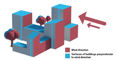 - Determine the average vertical building surface perpendicular to the wind direction. Again this is divided by the area of the search window.